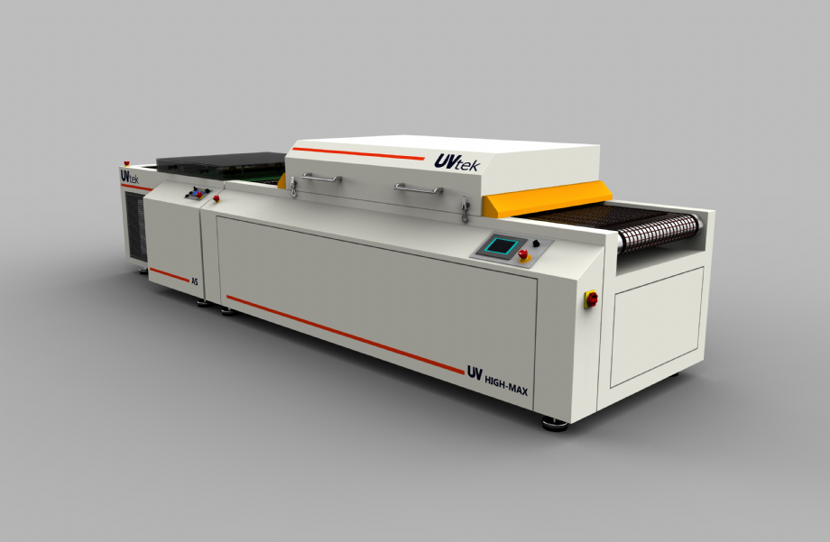 SC Model HIGH-MAX UV curing systems with conveyor has been designed as compatible with screen printing machines at different dimensions and brands as be able to be fixed to output of printing machine.